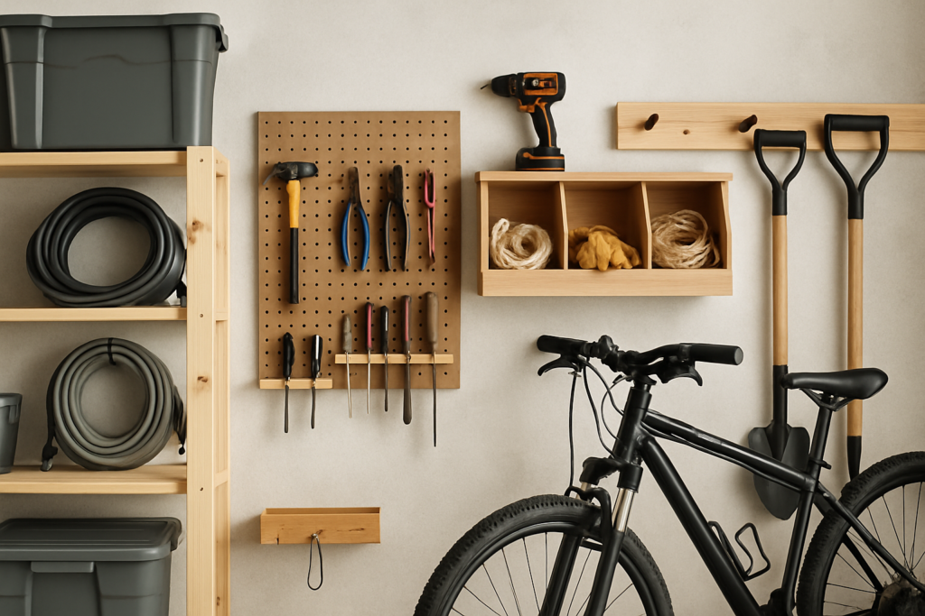A basic pegboard system gives you incredible flexibility for organizing tools and supplies. You can find these at most home improvement stores and customize them with various hooks and accessories.
