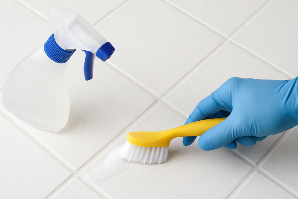 Baking soda creates a mildly abrasive paste that can scrub away surface stains without damaging grout. This method costs pennies and uses ingredients you likely already have at home.